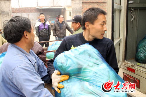 昨天,大眾報業(集團)發行有限公司收購了唐王鎮南殷村7戶菜農的3.7萬斤大白菜,而這些只是該公司“團聚愛心 傳遞真情”愛心活動的一部分。今天上午,6輛汽車再次來到南殷村,將之前預定的1.6萬斤愛心菜拉走。