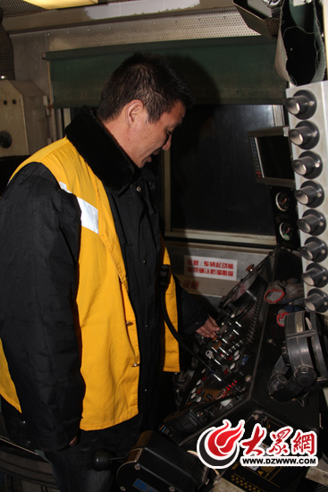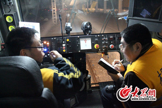 此時,搗固車副車長魏汝坤下車查看維修情況。由于正車長回家結婚,因此,他在行使正車長的職能。小魏20歲司機學校畢業(yè),一干就是8年,看著我們凍得直跺腳,他把我們拉到車上工作間笑著告訴我們:“今天最冷才零下6度,不太冷,施工點離車站只有一公里,這是我們最幸福的一夜了。前幾天在青島野外,零下十多度,臉都凍僵了……”