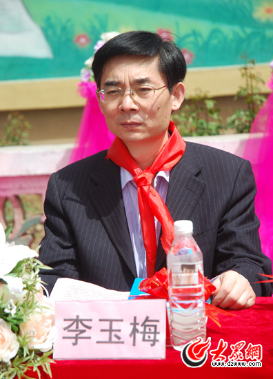 莒鎮鄉總校長李金國先后向林總和昝亮敬獻錦旗。捐贈儀式后,大眾網董事長、總經理林忠禮,齊魯書社總編輯昝亮,禹城市人大常委會第一副主任李玉梅,禹城市市委常委、宣傳部長閆秀麗一起為愛心圖書室揭牌。