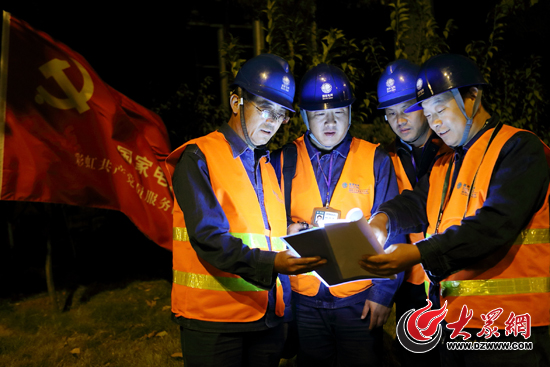 濟南公司輸電運檢室彩虹黨員服務隊隊員夜間對220kV清高線進行線路巡視