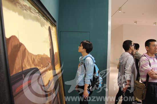 采訪團成員欣賞著美術館內陳設著的油畫。見習記者 馬俊驥 攝