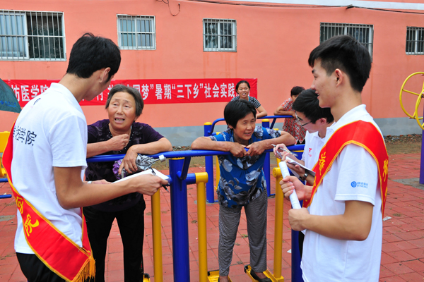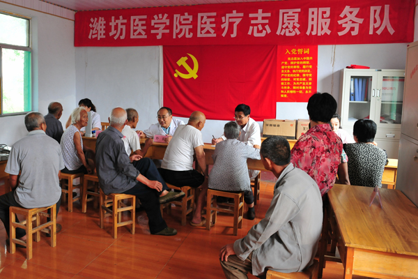 7月11日,濰坊醫學院內科、外科、婦科、兒科等醫療專家和42名基礎醫學院同學奔赴“第一書記”幫包村———德州市平原縣腰站鎮相馬河社區鍋培口村、小芝坊村開展社會實踐活動。