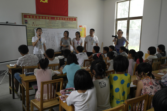 駐大廠村省派“第一書記”楊正運攜村干部精心組織宣傳報名,把村部布置成臨時教室。“抓黨建促脫貧是第一書記的職責,在做好物質扶貧的同時,文化扶貧是實現脫貧致富的一個重要途徑。讓山村的留守兒童與大學生面對面,提高綜合素質,點燃希望,規劃人生,引導孩子成為對國家有用的人才。”楊正運書記代表全體村民對“愛心支教團”表示熱烈歡迎。當支教團老師踏入教室的瞬間,46名學生起立鼓掌,求知的熱情讓人感動不已。根據英語、語文、數學和美術的課程安排,老師們認真備課,提前模擬演練。課堂上授課方式詼諧幽默,氣氛活躍,通過開展游戲活動激發學生的學習興趣,增強其自信心,進一步提升他們的綜合素質,努力做到“寓教于樂”,吸引了很多鄰村學生慕名而來。站在窗口“偷學”的學生家長笑的很燦爛。