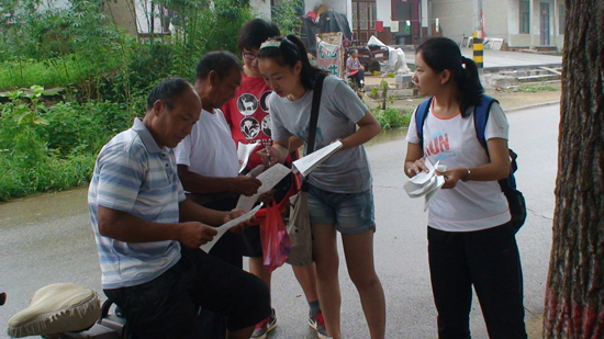 盡管天氣炎熱,條件艱苦,調研團隊依然堅持“走街串巷”,發傳單,做問卷,開座談。大家表示:艱苦的環境最能鍛煉人,大家認真完成調研任務,向駐守并奉獻在山區的“第一書記”學習,傾聽基層的聲音,學以致用,服務社會。