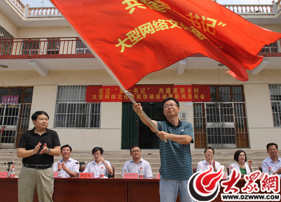 劉致福宣布“走近‘第一書記’共建美麗鄉(xiāng)村”大型網(wǎng)絡文化惠民活動正式啟動,并給采訪團授旗,大眾網(wǎng)記者尹玉濤代表采訪團接旗,啟動儀式圓滿結(jié)束。