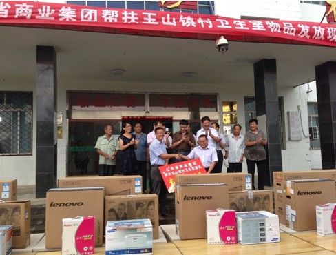 7月15日,山東省商業集團向玉山鎮玉山衛生院轄區內8所村衛生室捐贈了總價值27萬元的辦公、醫療設備,并在玉山鎮玉山衛生院舉行了捐贈儀式。山東省商業集團駐玉山“第一書記”張曉峰、張志國,臨沭縣衛生局黨組書記、局長黃振現、辦公室主任郭敬軍,玉山鎮人民政府鎮長劉國棟、副鎮長張萍,玉山鎮玉山衛生院院長李新聞出席了儀式。