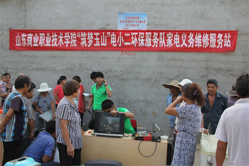 第二站是魯商集團(tuán)“第一書(shū)記”幫包村之一坊聯(lián)村,山東商業(yè)職業(yè)技術(shù)學(xué)院的“電小二”家電維修小組在村委大院前設(shè)立維修站,義務(wù)為村民維修家電。村民紛紛把家里損壞的家電送來(lái),夏末秋初的天氣依然很熱,同學(xué)們?nèi)徊活櫇M(mǎn)臉的汗水,聚精會(huì)神地給村民講解電器使用注意事項(xiàng),以及如何延長(zhǎng)電器使用壽命。活動(dòng)中,同學(xué)們共為村民免費(fèi)維修電器80臺(tái)。