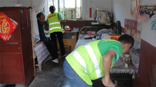 20日上午,志愿者來(lái)到本次活動(dòng)的最后一站——玉山鎮(zhèn)敬老院,為在這里生活的50位老人打掃衛(wèi)生、陪他們聊天。同學(xué)們充分發(fā)揚(yáng)不怕苦、不怕累的精神,為老人們擦玻璃、拖地板、清洗紗窗,大家干得不亦樂(lè)乎。打掃完衛(wèi)生,同學(xué)們還陪老人聊起了天,給他們表演節(jié)目,房間里不時(shí)傳出陣陣歡聲笑語(yǔ)。老人們不住地夸獎(jiǎng)同學(xué)們。