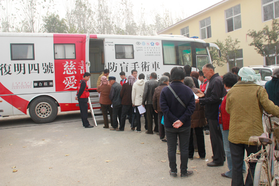 山東施爾明眼科醫院的“復明四號”流動手術車開進張魯集鄉政府大院為村民進行眼疾篩查
