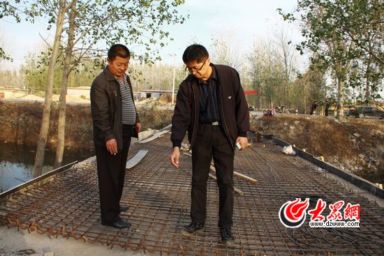 該村的“第一書記”王偉告訴記者,今年在董廟村修建了一座小橋,正在鋪設鋼筋的這座大橋主要是加固和加寬,以后車輛一律由大橋上通行。