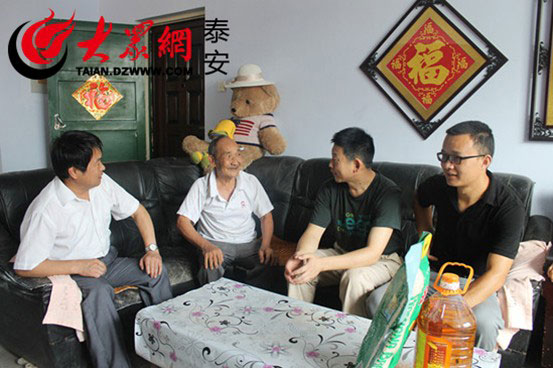 “第一書記”郭占祿(右二)、王振宇(右一)走訪社區老干部。(記者 張冉 攝影報道)