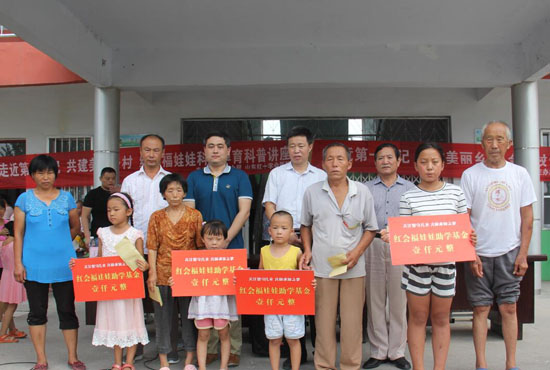 為山東省黃河河務(wù)局駐東平縣“第一書記”幫扶村特困留守兒童代表頒發(fā)了紅會(huì)福娃娃助學(xué)基金