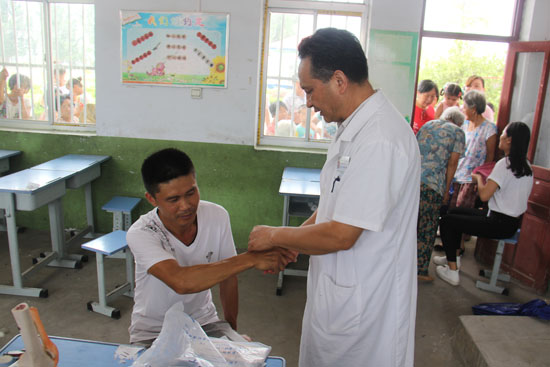 濟(jì)南骨科醫(yī)院的院長(zhǎng)郭延章為大羊鎮(zhèn)村民進(jìn)行了骨科篩查