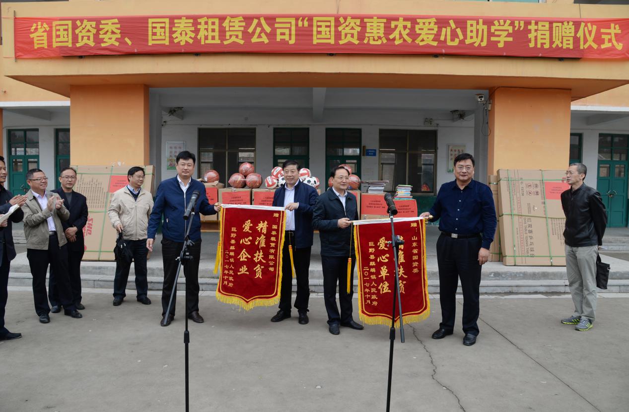 尹剛一行還實地參觀了巨野縣麒麟鎮(zhèn)南曹村恒業(yè)惠生農(nóng)牧業(yè)發(fā)展有限公司,在麒麟鎮(zhèn)六營學(xué)校開展了“國資惠農(nóng) 金秋助學(xué)”捐贈活動,向省國資委5個第一書記幫包村的中小學(xué)及幼兒園捐贈體育器械和圖書、玩具等,幫助改善學(xué)校體育設(shè)施和教學(xué)條件。