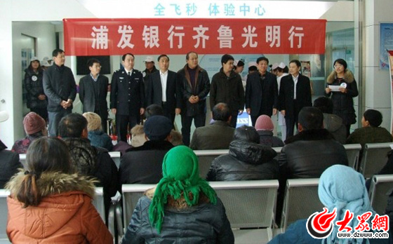 圖為浦發(fā)銀行愛心志愿者熱情迎接齊魯光明行活動(dòng)前來治療的村民。