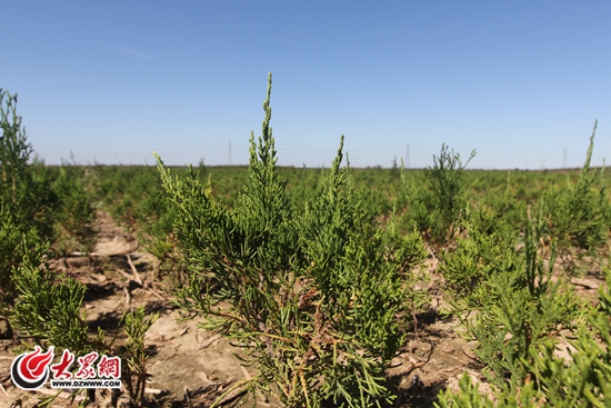 沾化以冬棗聞名全國,但在該縣的大樓鎮(zhèn)韓家糖坊村,卻很少能見到冬棗樹,這里種的最多的是龍柏。9月25日中午,大眾網(wǎng)記者在村里的百畝龍柏示范園前,看到綠油油的龍柏苗一眼望不到邊,而這個(gè)當(dāng)?shù)睾苌僖姷摹跋『蔽铩笔菫I州醫(yī)學(xué)院總務(wù)處的副處長——“第一書記”雋博永引進(jìn)來的“發(fā)財(cái)樹”。