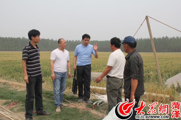 “第一書記”戰秉聚(左三)、譚效忠(左二)、尚延山(左一)打井工地現場解決施工問題