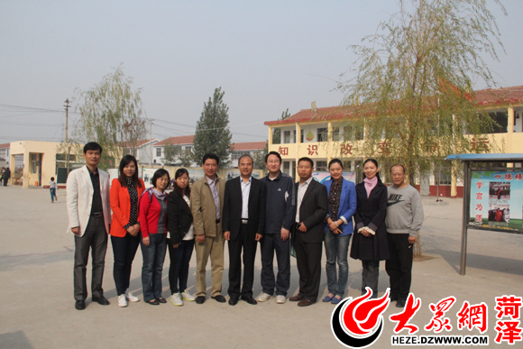 山東師大派駐東明縣菜園集鎮“第一書記”后衙村戰秉聚(左五)、祥寨村譚效忠(右一)、洪莊村尚延山(左一)與山東師大附小到菜園集鎮中心校送觀摩課的老師合影
