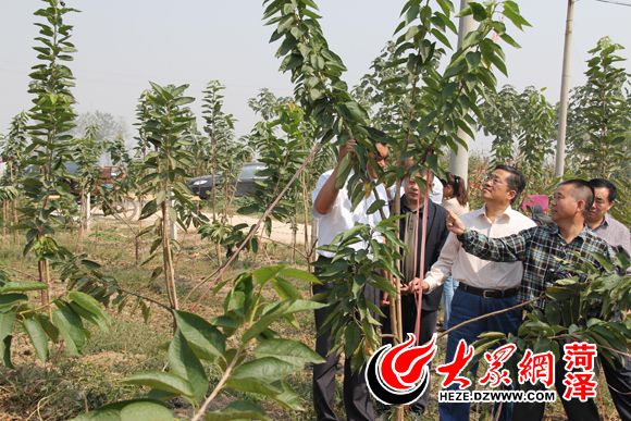 省林業(yè)廳造林綠化處周慶明處長帶領(lǐng)全處黨員干部在定陶縣杜堂鎮(zhèn)許堂村查看櫻桃樹生長情況(資料圖)