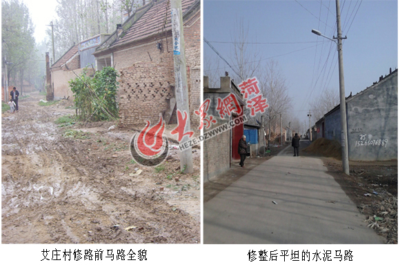 九女集鎮艾莊村修路前后的街道對比