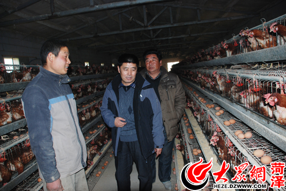 劉中坤(中)來到養雞場了解情況