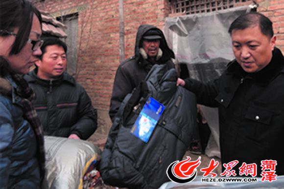 “第一書記”李振華(右一)為貧困群眾發放過冬棉衣