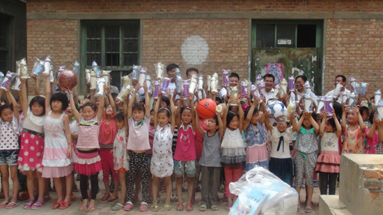 省人社廳機關黨委組織動員全廳干部職工,積極為幫包村兒童捐贈圖書、文具等物品共7000件!暗谝粫洝 多方籌集資金,為5個村小學、幼兒園的兒童購買了一萬多元的書包、水杯、本、筆、球類等學習、文體用品。大邢莊2所幼兒園接收社會捐贈幼兒滑梯等2組設施。濟南鐵路局兗州車務段與我廳幫包村大石莊、東周樓、大邢莊等結對子,并結合群眾路線教育實踐活動前來為幫包村兒童進行捐贈活動,捐贈近2萬元物品600件。濟南市南上山街小學倡導發起了“傳遞愛心、共享藍天”主題活動,全校師生踴躍為幫包村小學的孩子們捐贈書籍、文具、玩具等物品共7000件。大石莊小學選出2名品學兼優的學生代表和2名老師到南上山街小學為全校師生作報告,全程參與學校的升旗、教學等活動,城市小學師生與貧困農村小學師生進行了有效互動。
