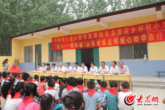 用知識撒播大地,用愛心溫暖人間。齊魯銀行一直秉承“感恩社會 構筑和諧”的宗旨,2012年9月,大眾網聯合愛心企業齊魯銀行在鄆城縣黃集鄉西張莊小學捐建首個齊魯銀行愛心圖書室。今年“六一”兒童節來臨之際,齊魯銀行繼續傳遞“正能量”,踐行媒體和企業的社會責任感、使命感,在聊城市莘縣俎店鄉許村小學繼續捐建齊魯銀行愛心圖書室。
