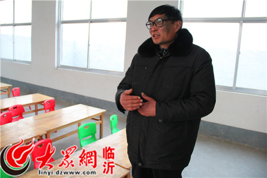 “第一書記”向記者介紹新建幼兒園的配套設(shè)施