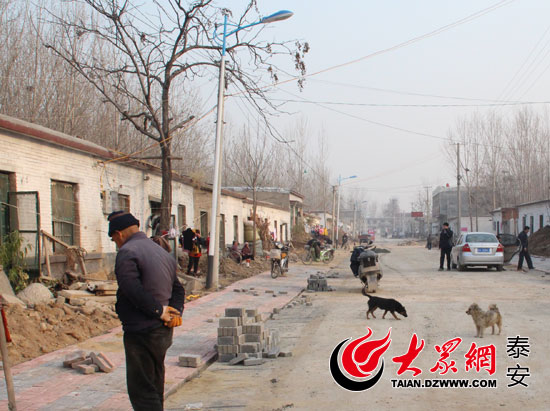 “第一書記”張銀亮為戴廟村硬化了道路,并裝上了路燈。記者采訪時,此路段還在施工中。(見習記者 張璐 攝)