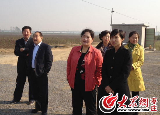 閔瑩(前排右一)在查看胡莊村花卉項目基地建設情況。(資料圖)