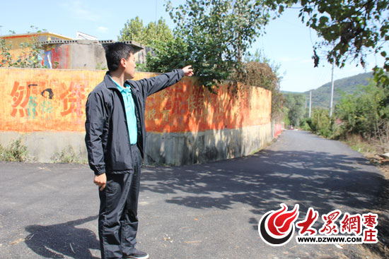 “第一書記”亓振軍手指村內柏油路介紹柏情況。