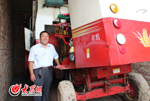 曲學(xué)水專門給聯(lián)合收割機(jī)蓋了一間“機(jī)房”。他說,這臺收割機(jī)是合作社的“開社功臣”。記者 滿志旺 攝