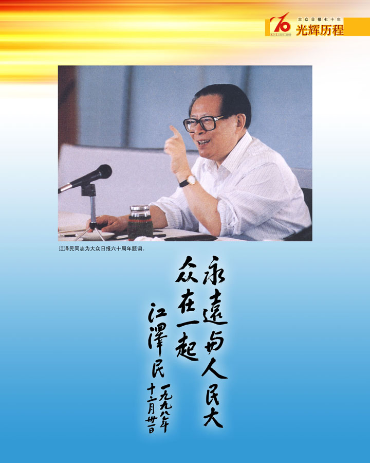 江澤民同志為大眾日報創刊60年題詞