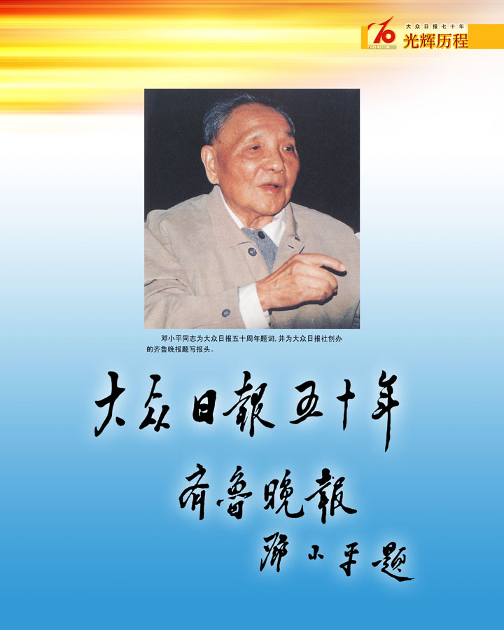 鄧小平同志為大眾日報創刊50年題詞,并為齊魯晚報題寫報頭