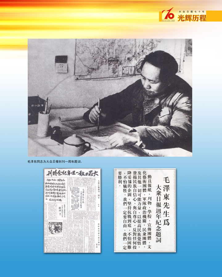 毛澤東同志為大眾日報創刊一周年題詞
