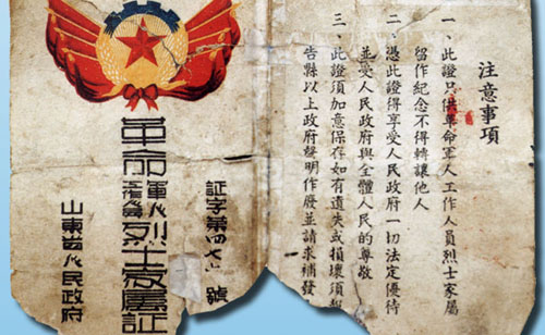 新中國成立后為犧牲的新聞工作者補發的烈士證