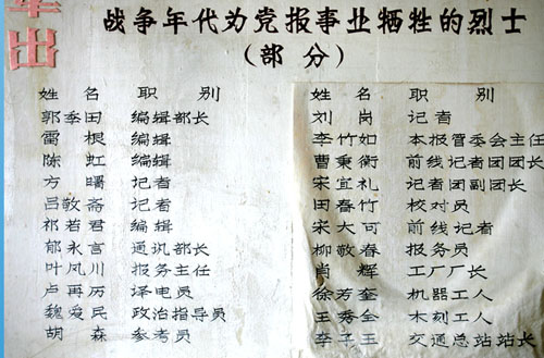 華東抗日戰爭中殉職的新聞工作者名單,解放戰爭中殉職的新聞工作者名單