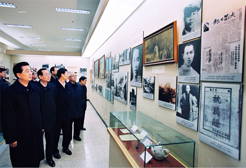 胡錦濤同志在冀魯豫邊區革命紀念館觀看解放前出版的大眾日報