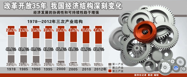 圖表:改革開放35年 我國(guó)經(jīng)濟(jì)結(jié)構(gòu)深刻變化 新華社記者 秦迎 編制(資料圖)