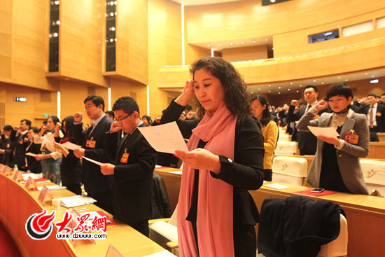 山東省青聯十二屆一次會議閉幕式上,青聯委員們莊嚴宣誓 記者 馬俊驥 攝