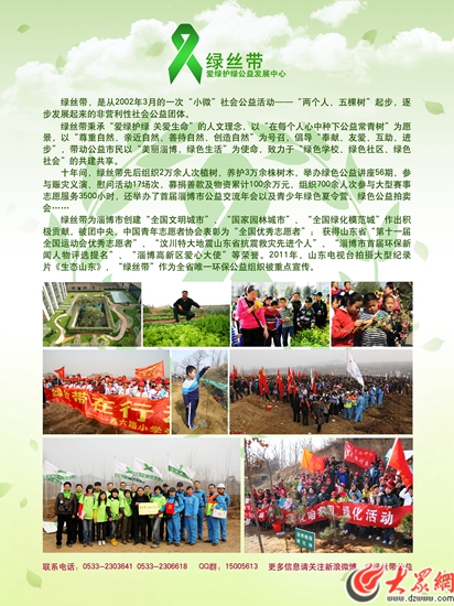 綠絲帶秉承“愛綠護綠?關愛生命”的人文理念,以“在每個人心中種下公益常青樹”為愿景,以“尊重自然、親近自然、善待自然、創(chuàng)造自然”為號召,倡導“奉獻、友愛、互助、進步”,帶動公益市民以“美麗淄博,綠色生活”為使命,致力于“綠色學校、綠色社區(qū)、綠色社會”的共建共享。