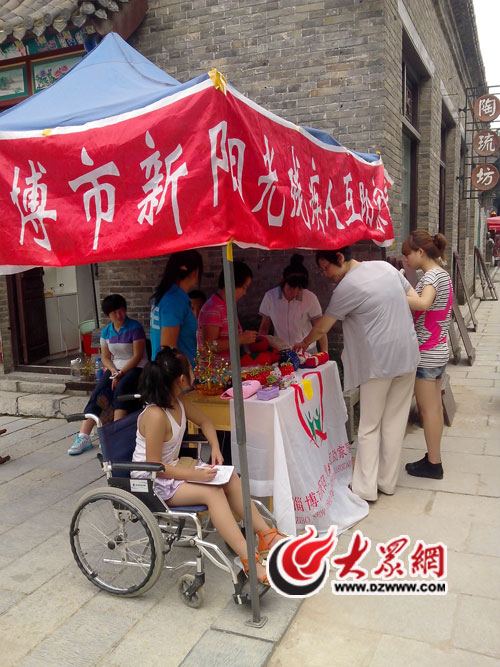 在這整個過程中涌現了許許多多感人的瞬間,更加堅定了我們在傳播公益、奉獻自我這條路上走下去的信心。當我們和一些殘疾人朋友在周村古商城進行義賣活動時,周村旅游局領導聽說我們這一情況以后很感動,專門免費為我們提供了一個攤位。我們的作品由于是是純手工制作,精美別致,頗受游客的青睞,有的游客當場就提出捐助的愿望。商城里的商戶和工作人員為我們送飯送水,原來公益在每個人的心中。