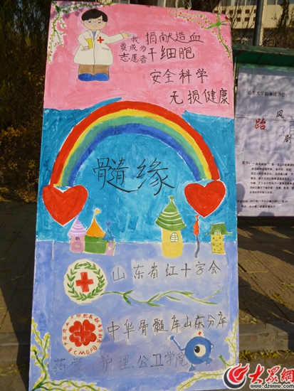 為了拯救更多的生命,近年來,中國紅十字會建立了中華骨髓庫以增加配型成功的可能性。2012年以來,在山東省紅十字會的建議及支持下,我們山東大學藥學院青志協開展了以“無言大愛,攜手共創生命奇跡”為主題的髓緣活動。目前,我們已先后開展了造血干細胞捐獻服務志愿者招募活動以及捐獻造血干細胞的宣傳活動,并取得了完滿的勝利,成功建立起了干細胞捐獻志愿服務大隊,并招募到一批志愿加入中華骨髓庫的的同學。