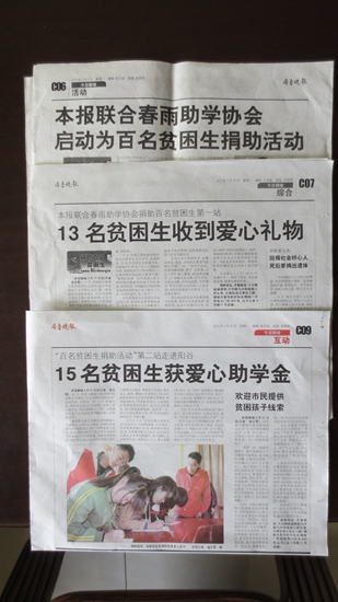 《齊魯晚報》多次對“百名貧困生捐助”活動進行宣傳報道,吸引了廣大愛心團體和市民的積極加入。