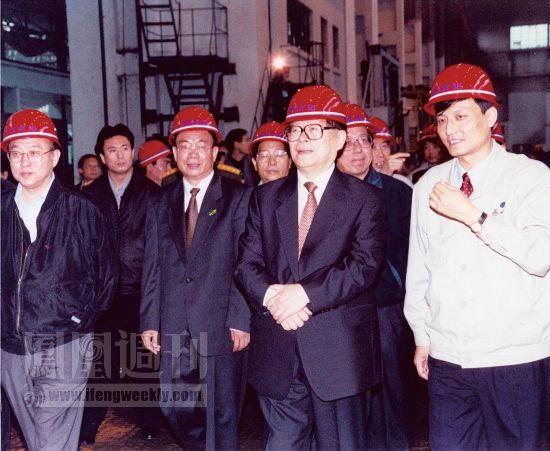 圖:2002年5月22日,時(shí)任重慶市委書記的賀國強(qiáng)陪同江澤民同志視察西南鋁廠。