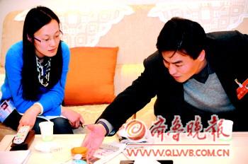 ◥章丘市長為本報記者擺“圖”解讀章丘發展。 本報記者 左慶 攝