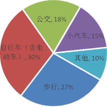 (1)工作日,主要的交通出行方式依次為步行、自行車、