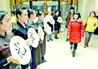 近日,中國(guó)式“剩宴”成為各界熱議的話題。為了更為有效地反對(duì)浪費(fèi),眾多餐飲企業(yè)、政府機(jī)關(guān)、企事業(yè)單位等紛紛出臺(tái)相應(yīng)改進(jìn)措施,下狠力氣厲行節(jié)約、杜絕浪費(fèi),不少網(wǎng)民更是在網(wǎng)絡(luò)上發(fā)起以吃光盤子里的東西為主題的“光盤行動(dòng)”,越來越多有識(shí)之士也積極加入到“光盤行動(dòng)”中來。圖為1月24日,青島海景花園大酒店員工在酒店入口開展“厲行節(jié)約、文明用餐”倡議宣傳。 新華社記者 李紫恒攝