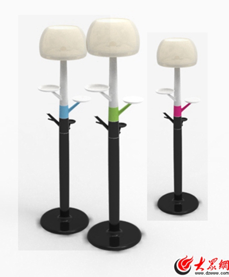 這款植物架的外形設計是以菌類植物為仿生對象,賦予其優(yōu)美的形態(tài)。功能設計上遵循綠色設計的原則,該產品可以拆卸組裝,方便搬運,便于人們使用。托盤上可以放置多肉型植物的盆栽,晚上還可以放出氧氣。放在臥室里不僅可以當燈使用,還提供了充足的氧氣,一舉兩得。